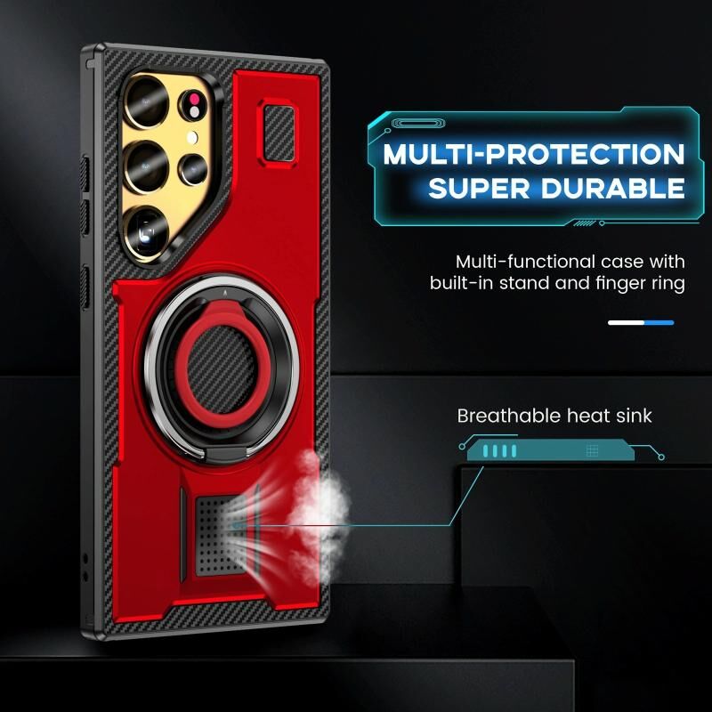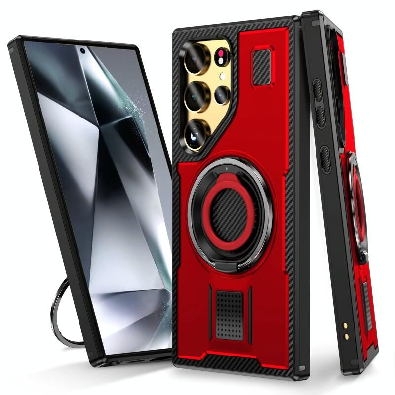Για Samsung Galaxy S22 Ultra 5G Ring Holder Carbon Fiber PC υβριδικό TPU τηλέφωνο υπόθεση (κόκκινο)