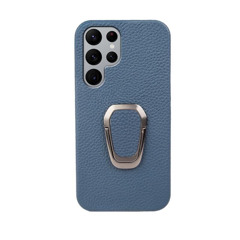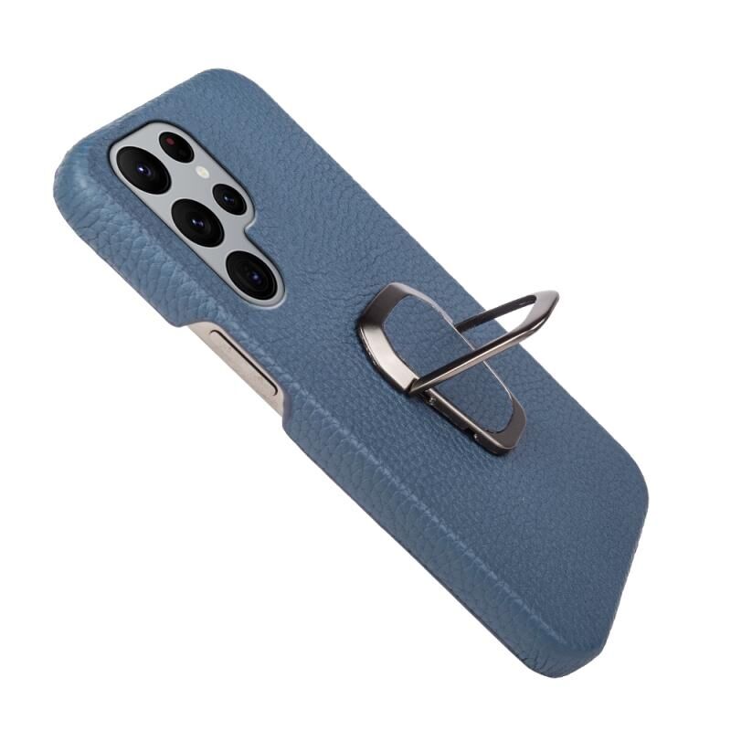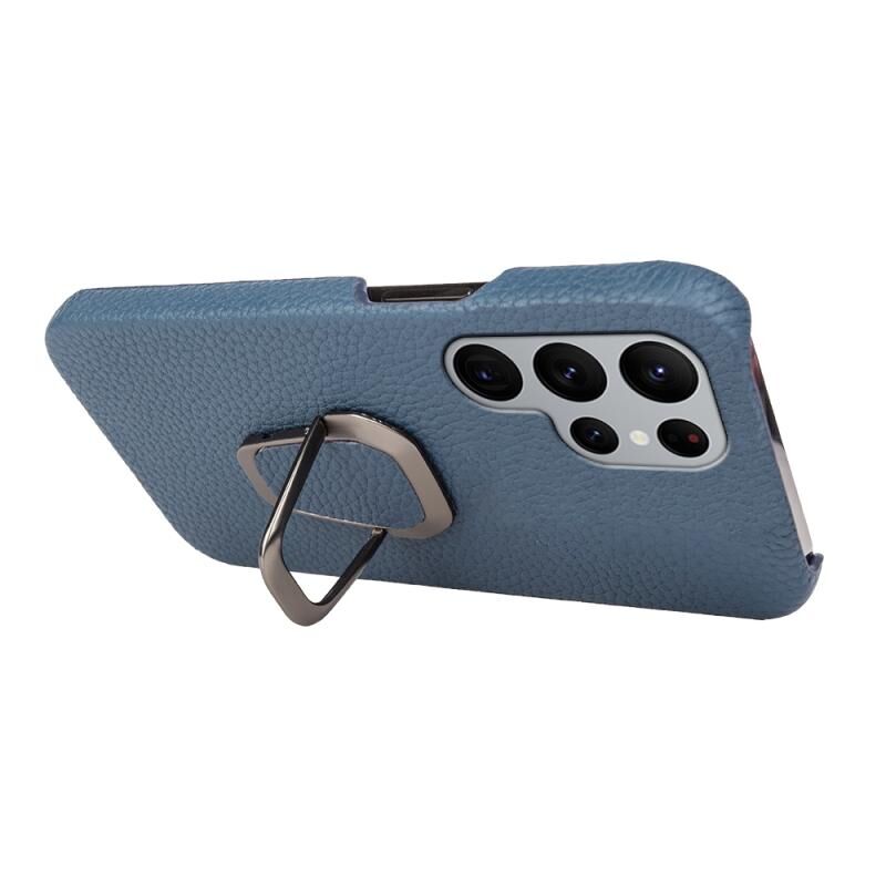 Θήκη κινητού τηλεφώνου Samsung Galaxy S22 Ultra 5G με δακτύλιο και γνήσιο δέρμα υφής λύτσι (Μαύρο)