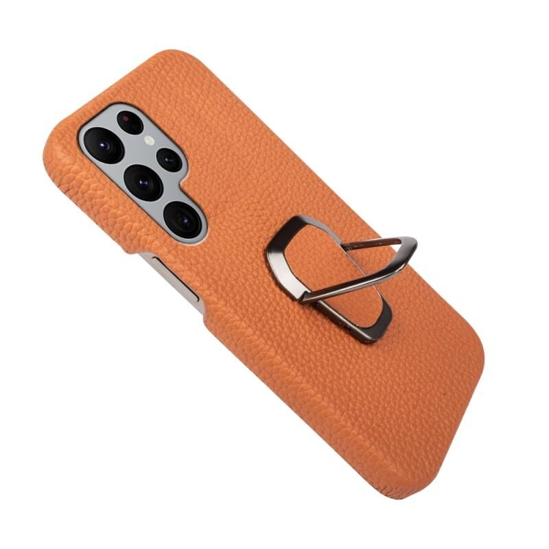 Θήκη κινητού τηλεφώνου Samsung Galaxy S22 Ultra 5G με δακτύλιο και γνήσιο δέρμα υφής λύτσι (Μαύρο)
