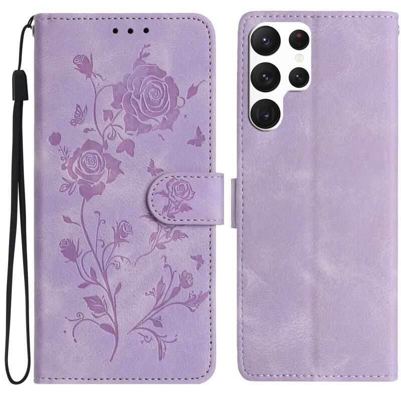 For Samsung Galaxy S22 Ultra 5G Rose Flower Embossing Pattern Leather Phone Case(Light Purple)