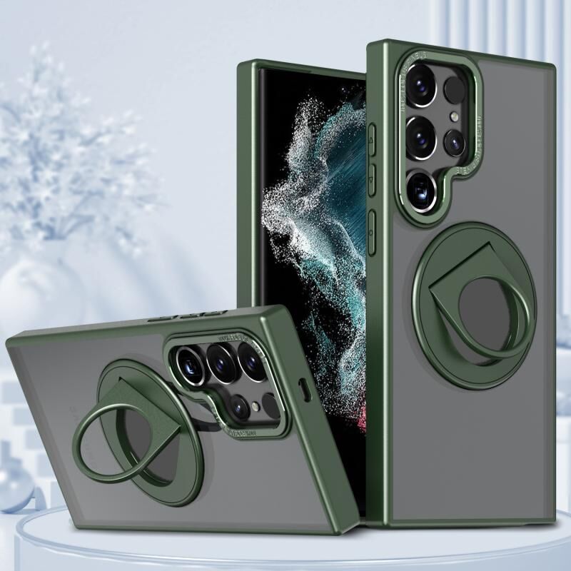 Θήκη κινητού τηλεφώνου με περιστρεφόμενο δακτύλιο και μαγνητική βάση για Samsung Galaxy S22 Ultra 5G (Μαύρο)