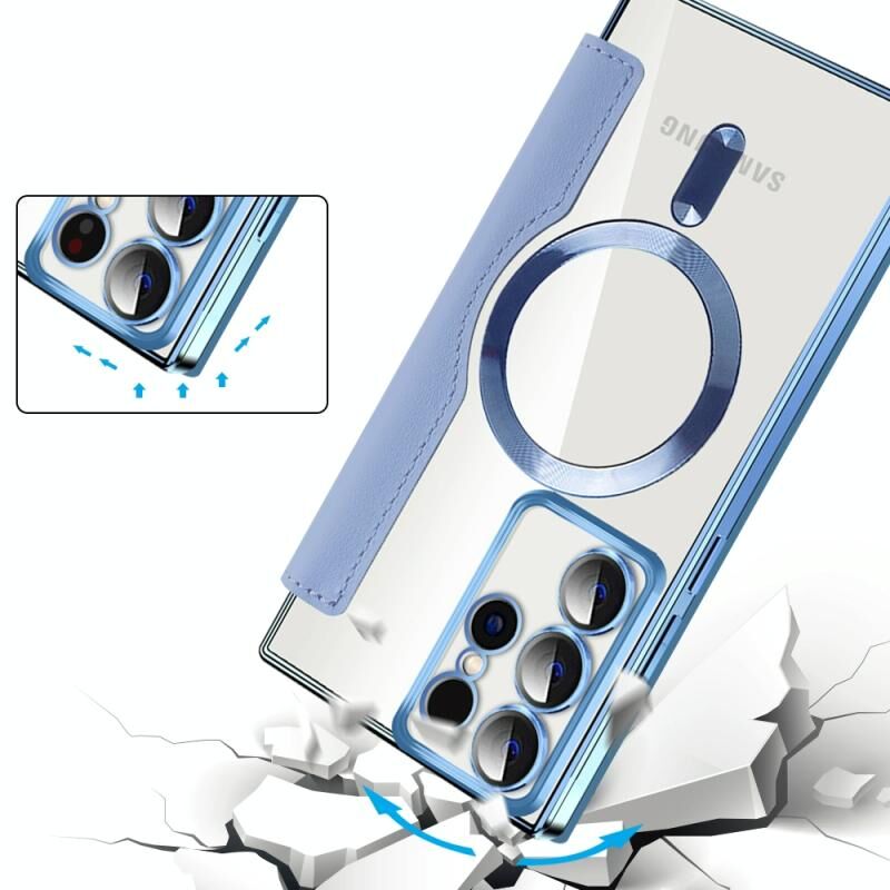 Θήκη τηλεφώνου δερμάτινη με μαγνητική υποστήριξη MagSafe, αντι-κλοπής RFID για Samsung Galaxy S22 Ultra 5G (Μαύρο)