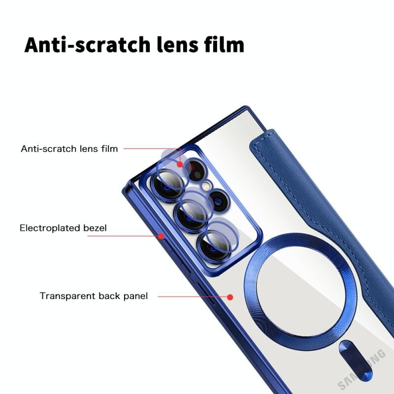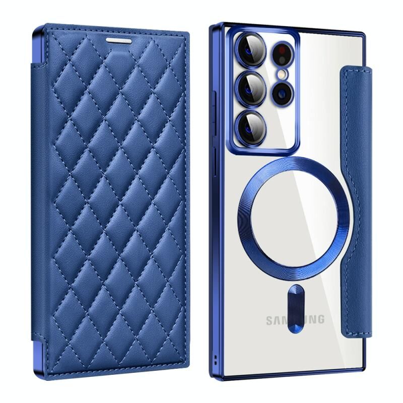 Θήκη κινητού Samsung Galaxy S22 Ultra 5G Shield MagSafe RFID Anti-theft από δέρμα με ρόμβους (Σκούρο Μπλε)