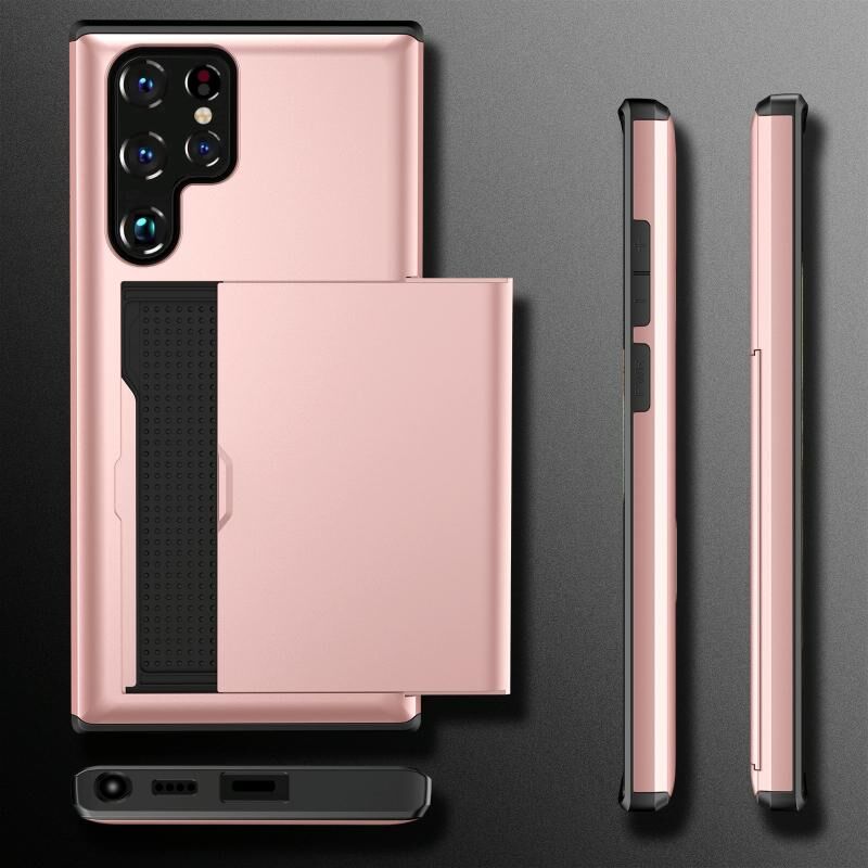 Για Samsung Galaxy S22 Ultra 5G Αδιάβροχη θήκη τηλεφώνου με υποδοχή κάρτας (ροζ κόκκινο)