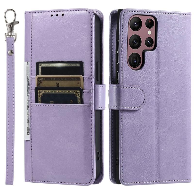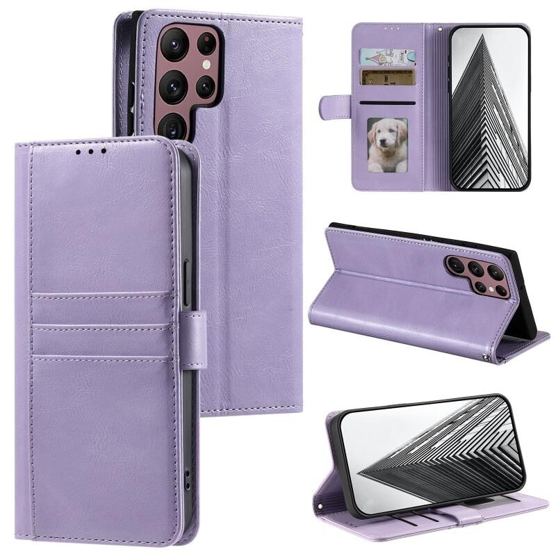 Για Samsung Galaxy S22 Ultra 5G Απλή 6-Card πορτοφόλι δερμάτινη θήκη τηλεφώνου (μωβ)