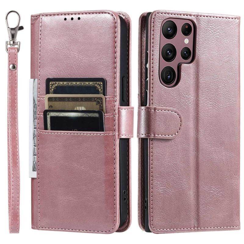 Για Samsung Galaxy S22 Ultra 5G Απλή 6-Card πορτοφόλι δερμάτινη θήκη τηλεφώνου (ροζ χρυσό)