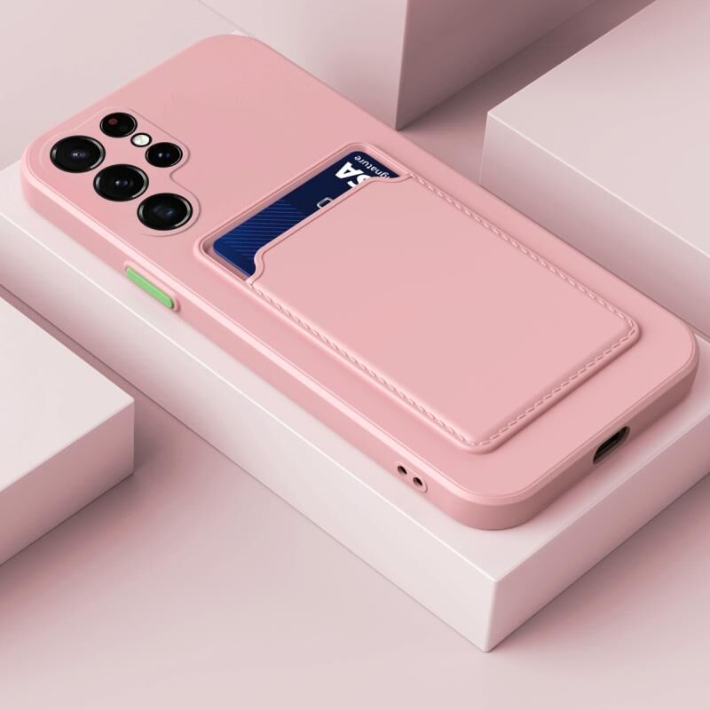 Για Samsung Galaxy S22 Ultra 5G δέρμα αίσθηση κάρτα κάρτα αντίθεση χρώμα κουμπί TPU τηλέφωνο υπόθεση (ροζ)