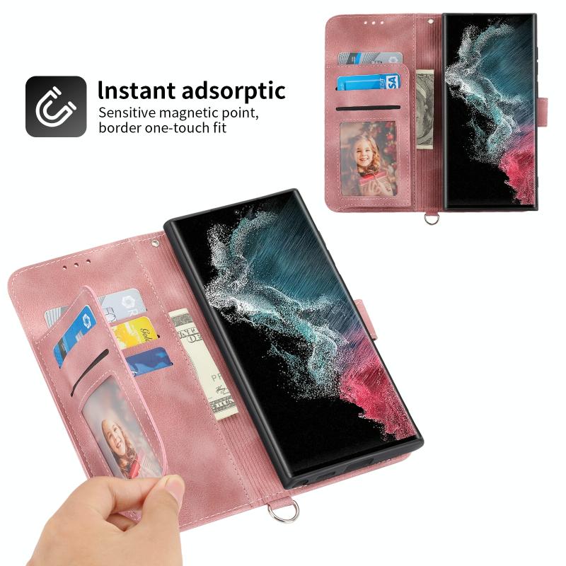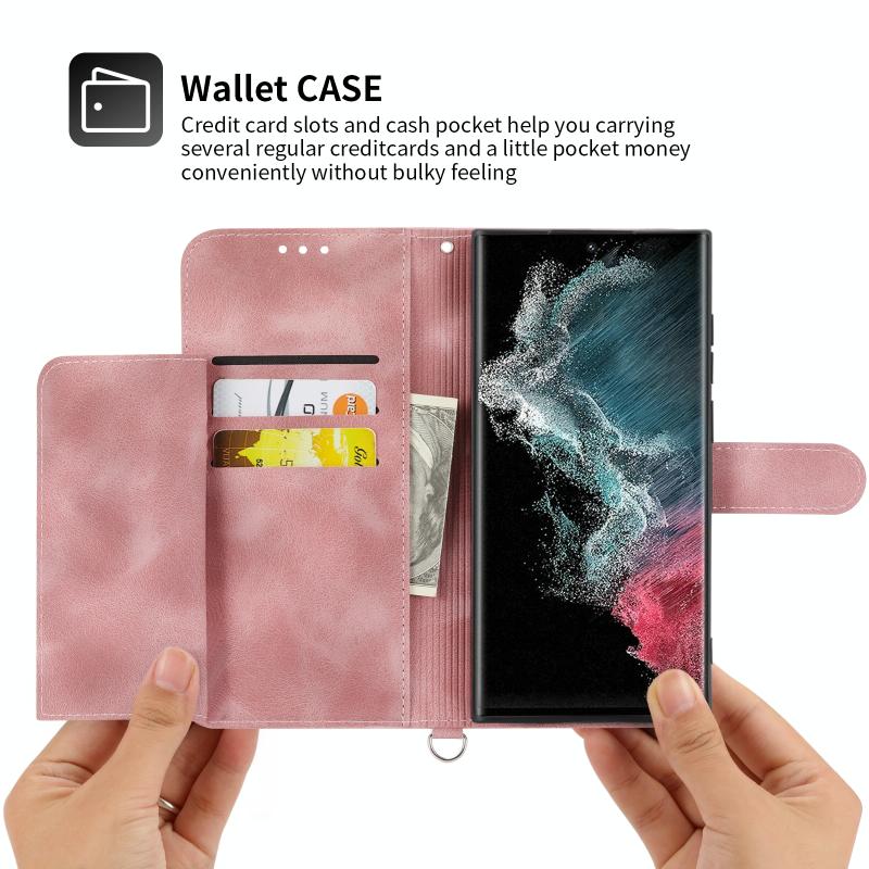 Θήκη τηλεφώνου Samsung Galaxy S22 Ultra 5G από δέρμα με ανάγλυφα λουλούδια και υφή δέρματος (Κρασί Κόκκινο)