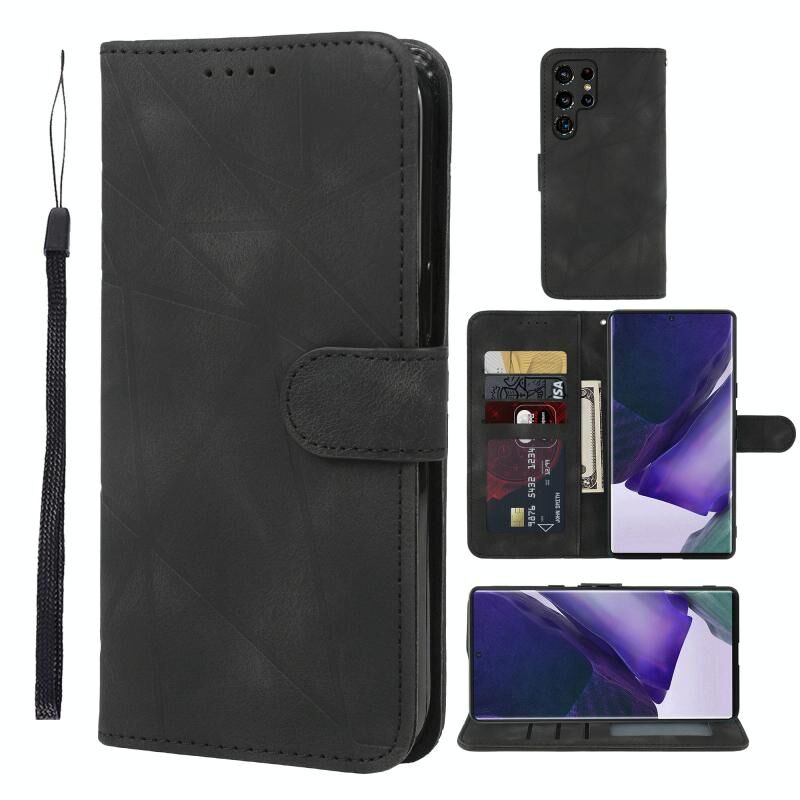 Θήκη τηλεφώνου Samsung Galaxy S22 Ultra 5G με δερμάτινη υφή, γεωμετρικά σχέδια (Μαύρο)