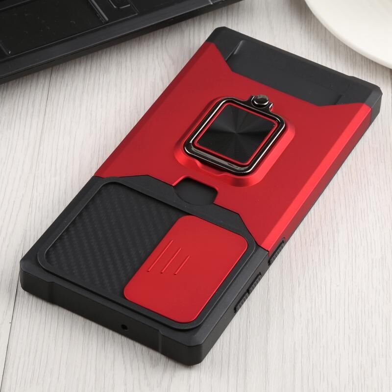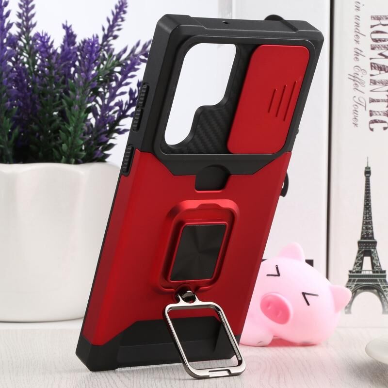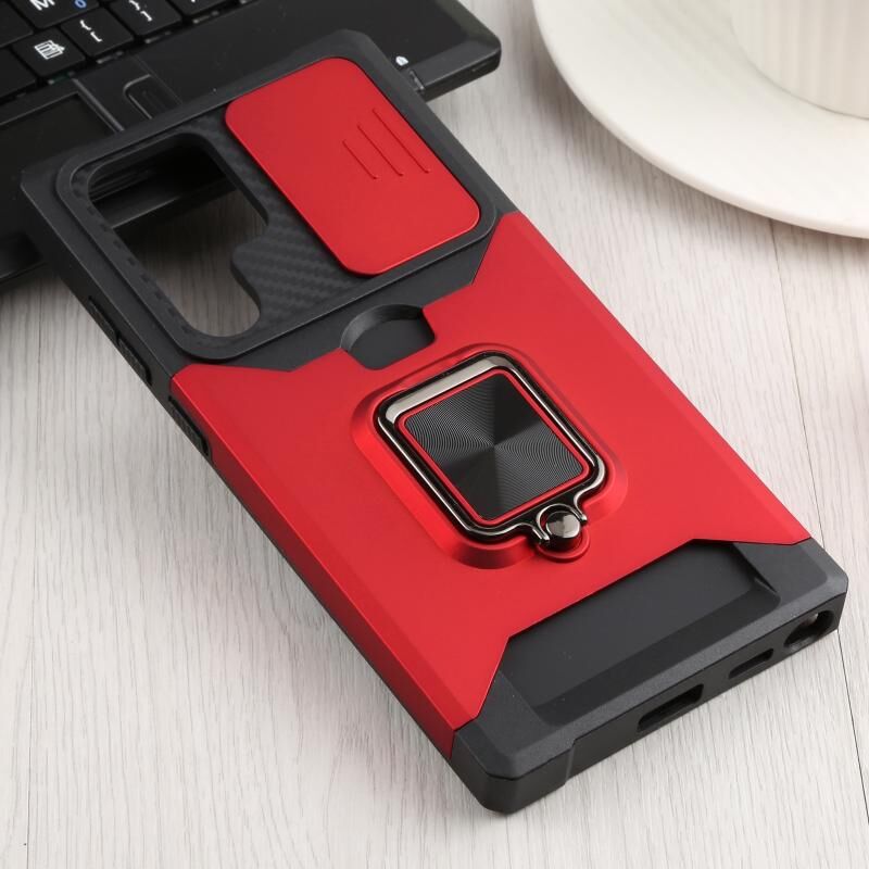 Για Samsung Galaxy S22 Ultra 5G συρόμενη κάμερα Cover Design PC + TPU Shockproof υπόθεση τηλεφώνου με θήκη δαχτυλίδι & υποδοχή κάρτας (κόκκινο)