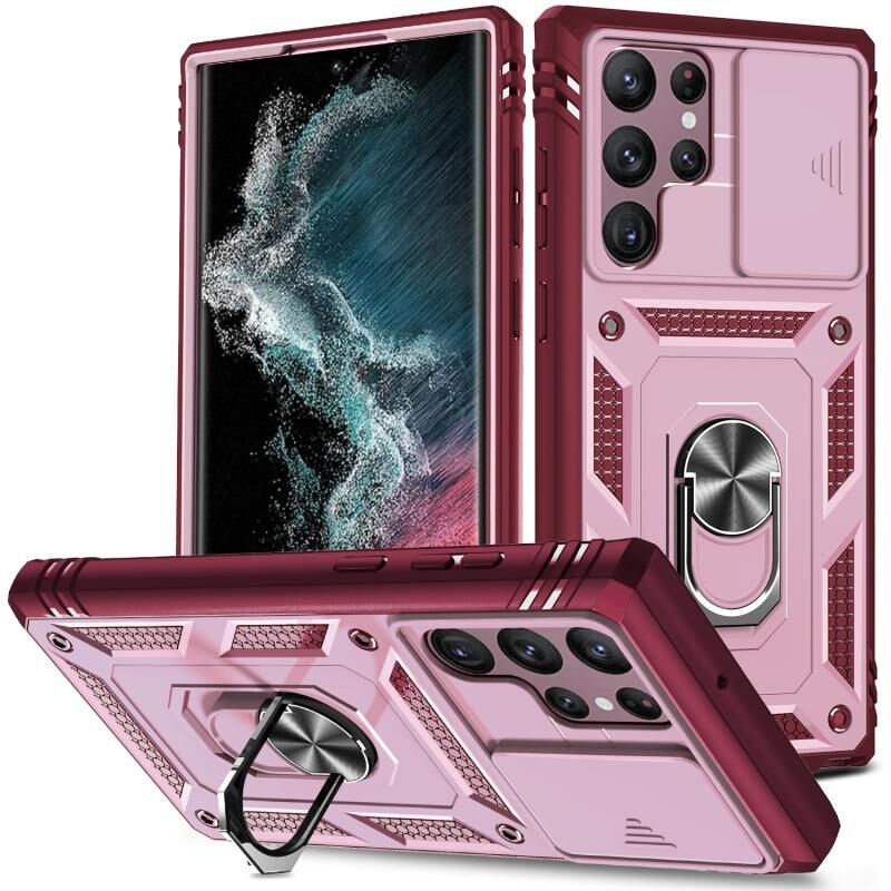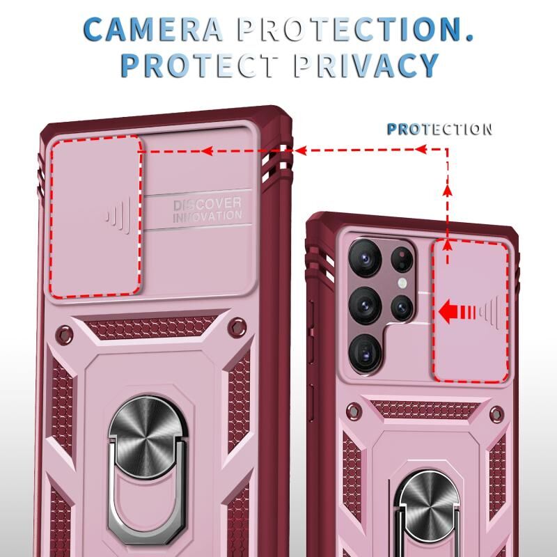 Θήκη κινητού τηλεφώνου για Samsung Galaxy S22 Ultra 5G με ολισθαίνουσα κάλυψη κάμερας, TPU + PC (Λευκό+Μαύρο)