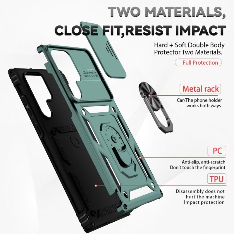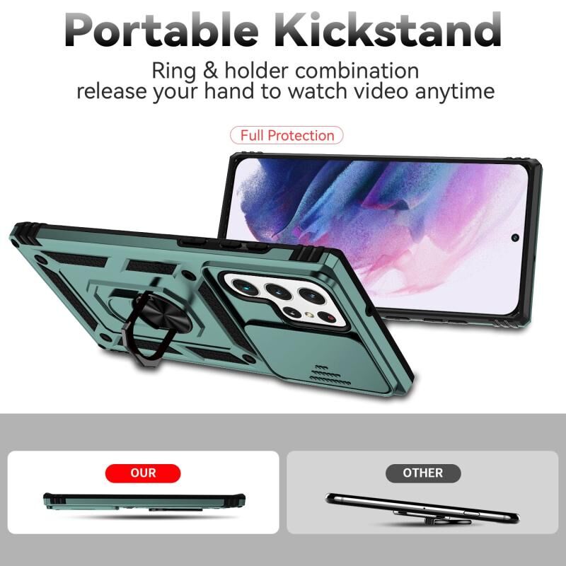Για Samsung Galaxy S22 Ultra 5G Συρόμενη θήκη τηλεφώνου Camshield Holder (σκούρο πράσινο)