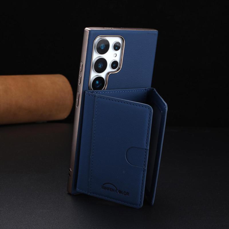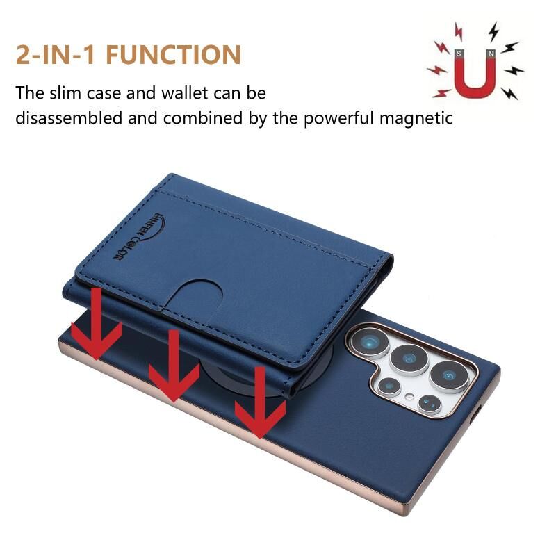 For Samsung Galaxy S22 Ultra 5G Solid Color Horizontal Magnetic Card Bag RFID MagSafe Phone Case(Dark Blue)
