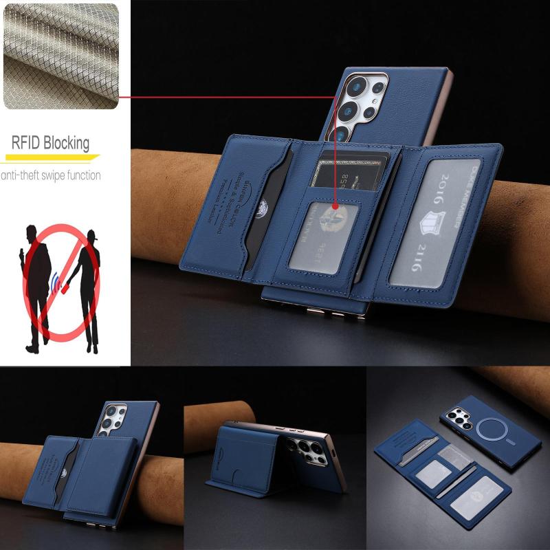 2. Magnetic Tri-Fold Wallet Design: Features a horizontal fold with a strong magnetic closure for easy access and secure storage.