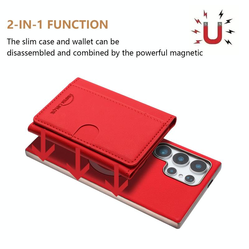 For Samsung Galaxy S22 Ultra 5G Solid Color Horizontal Magnetic Card Bag RFID MagSafe Phone Case(Red)