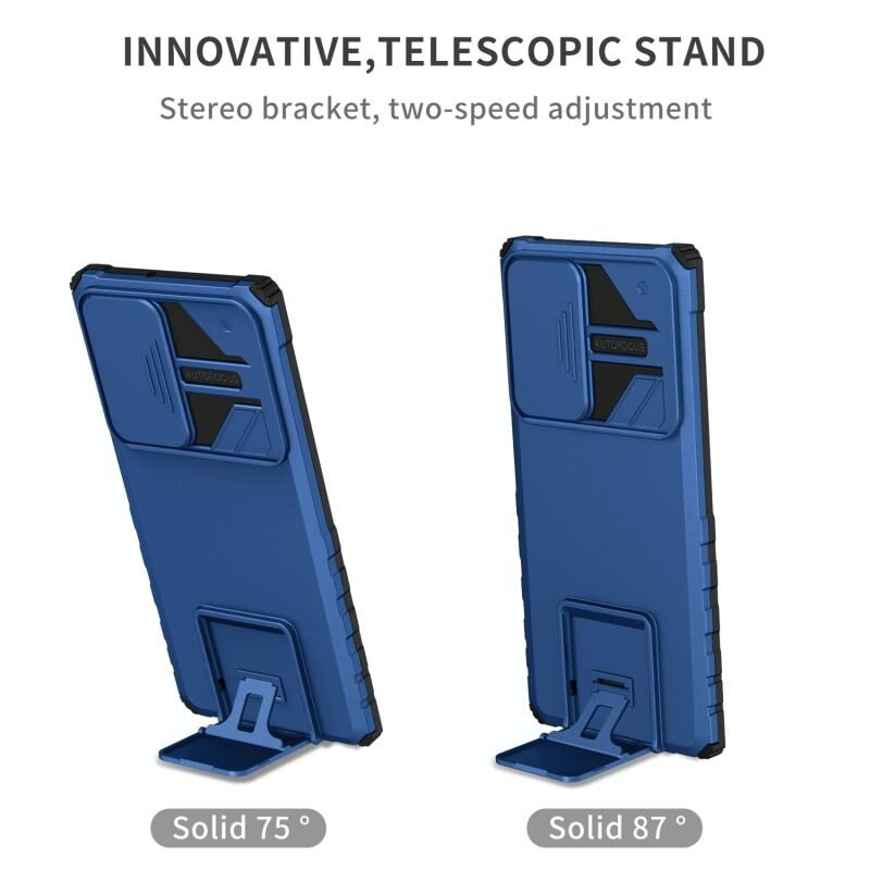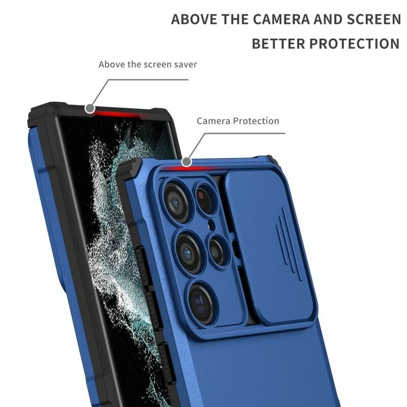 Για Samsung Galaxy S22 Ultra 5G Στερεοσκοπικό κάτοχος συρόμενη Camshield θήκη τηλεφώνου (μπλε)