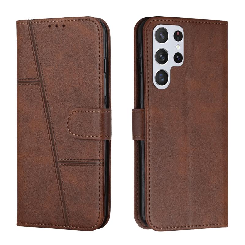 For Samsung Galaxy S22 Ultra 5G Stitching Calf Texture Buckle Leather Phone Case(Brown)