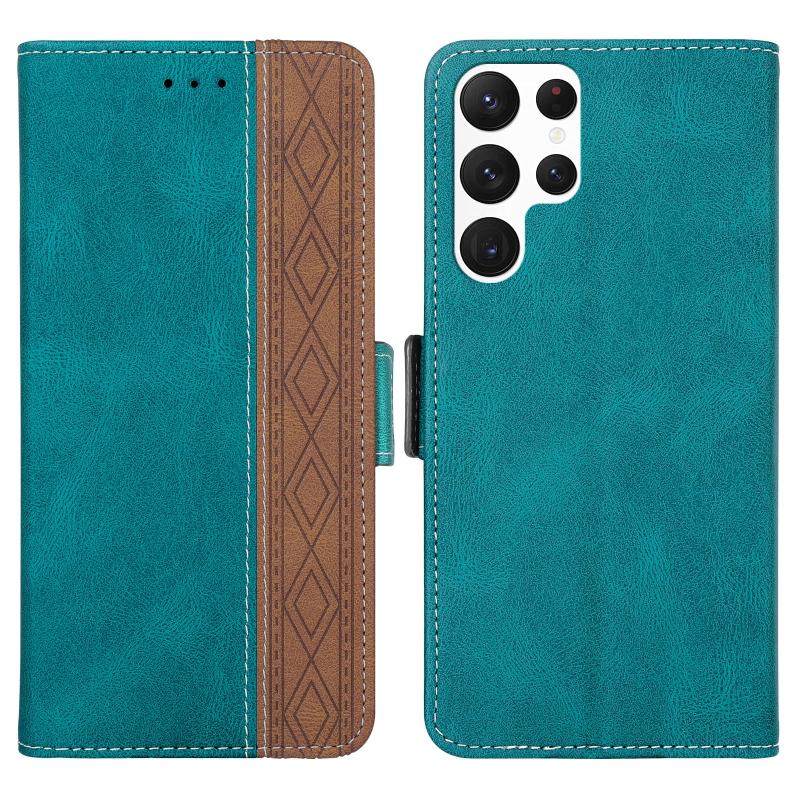 For Samsung Galaxy S22 Ultra 5G Stitching Side-Magnetic RFID Leather Phone Case(Dark Green)
