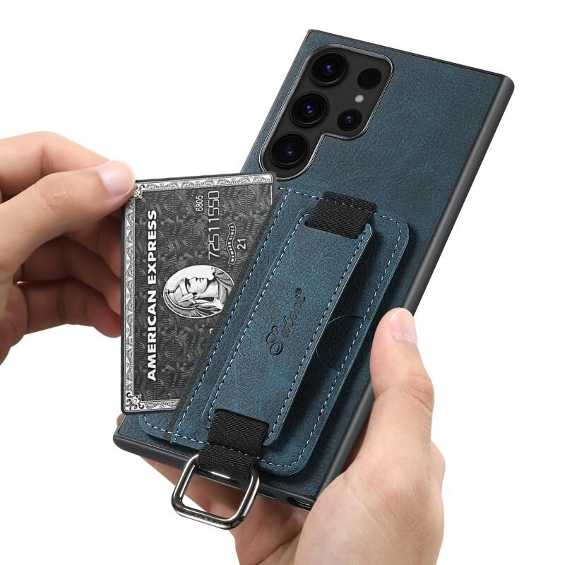 Θήκη κινητού τηλεφώνου Suteni H13 από δέρμα Lychee με λουρί καρπού και θήκη πορτοφολιού για Samsung Galaxy S22 Ultra 5G (Μπλε) (Suteni)