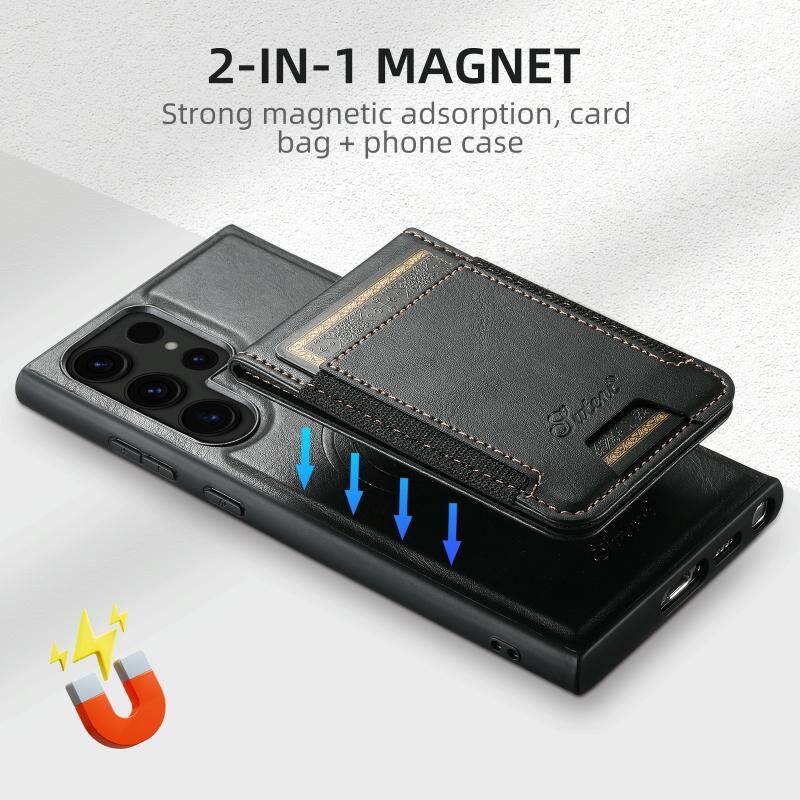 Θήκη τηλεφώνου-πορτοφόλι αποσπώμενη MagSafe από δέρμα Eax λαδιού Suteni H17 για Samsung Galaxy S22 Ultra 5G (Μαύρο) (Suteni)