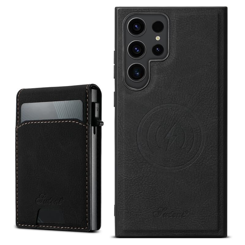 For Samsung Galaxy S22 Ultra 5G Suteni H19 Litchi Texture 2-in-1 MagSafe Removable Card Case Back Phone Case(Black) (Suteni)