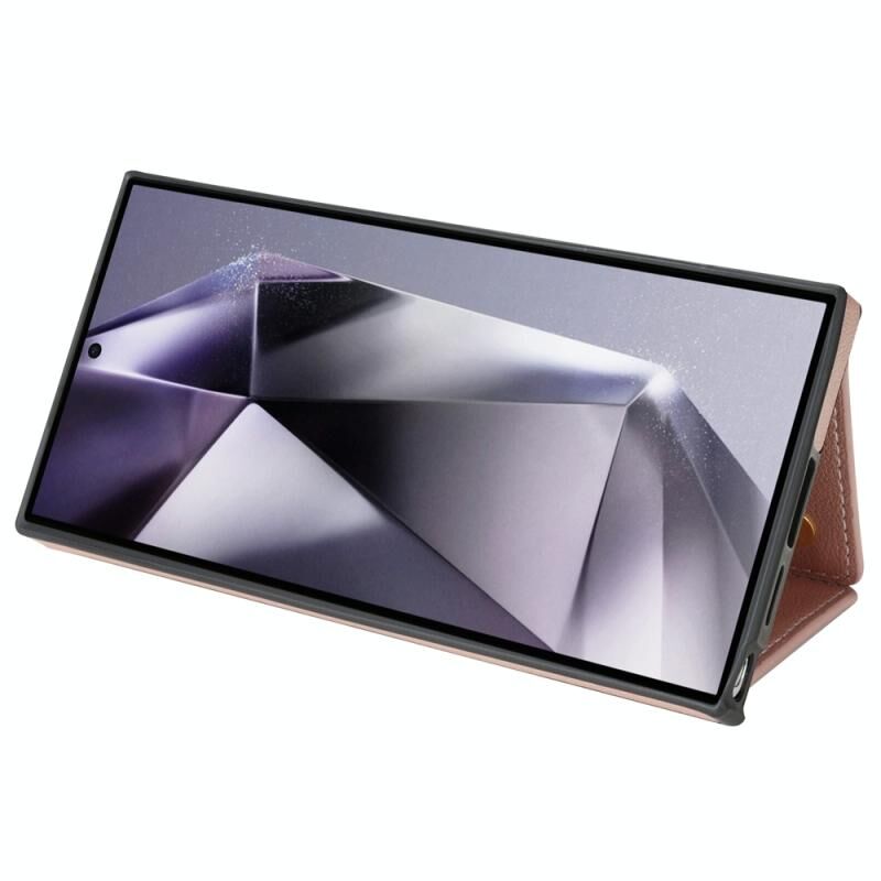 Για Samsung Galaxy S22 Ultra 5G Τρεις φορές κάρτα τσάντα υπόθεση τηλεφώνου με μακρύ κορδόνι (ροζ χρυσό)