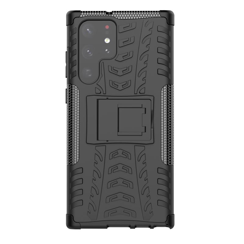 Θήκη κινητού τηλεφώνου Samsung Galaxy S22 Ultra 5G με υφή ελαστικού + PC και βάση στήριξης (Ροζ)