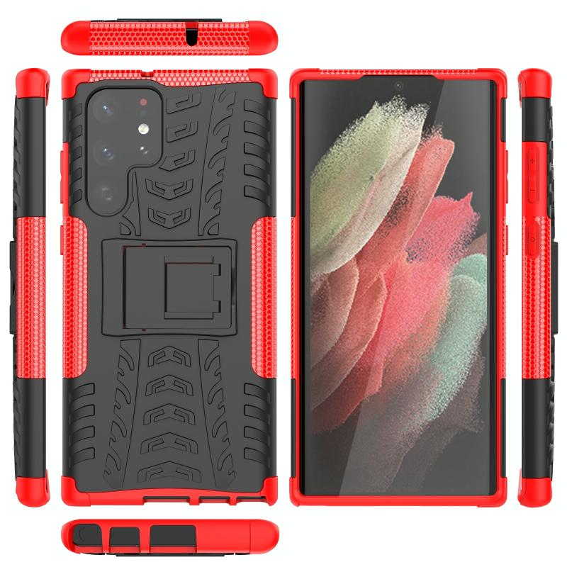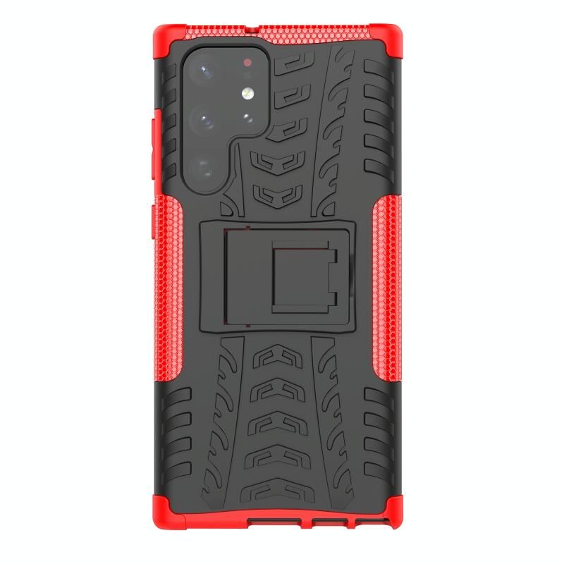 Θήκη κινητού τηλεφώνου Samsung Galaxy S22 Ultra 5G με υφή ελαστικού + PC και βάση στήριξης (Ροζ)