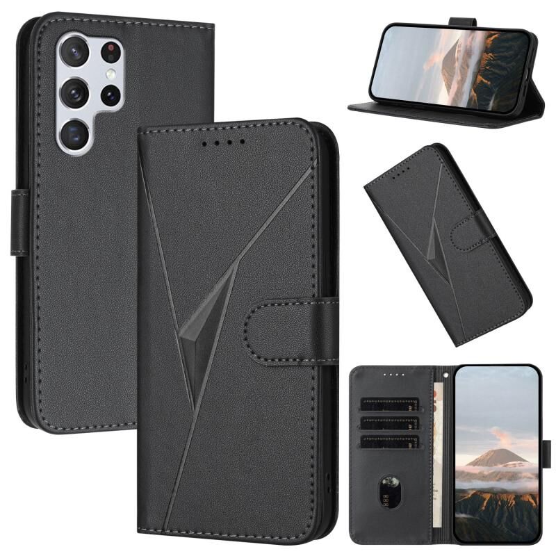 Για Samsung Galaxy S22 Ultra 5G Τρίγωνο μοτίβο αγκράφα κούμπωμα δερμάτινη θήκη τηλεφώνου (μαύρο)