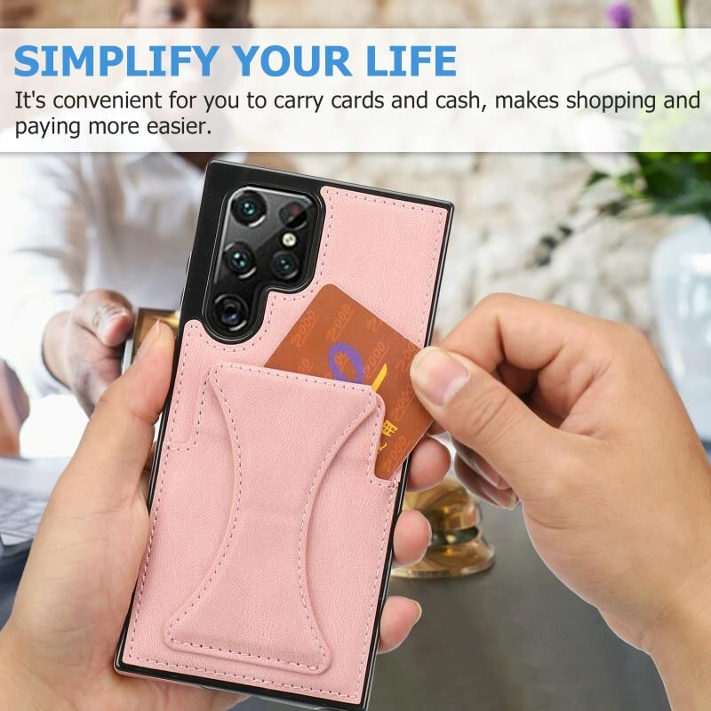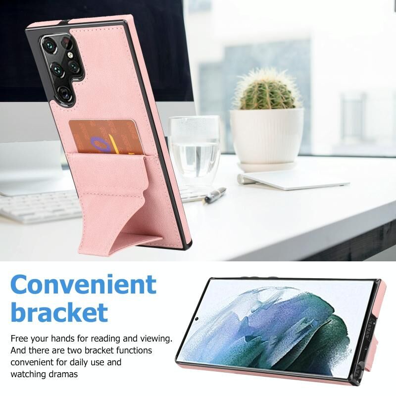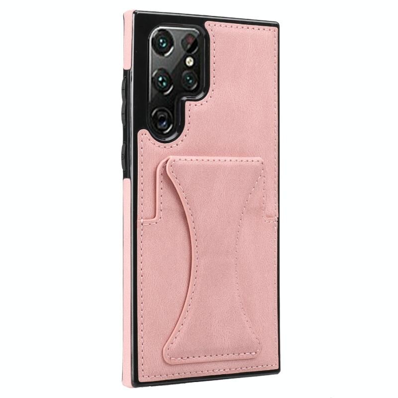 For Samsung Galaxy S22 Ultra 5G Ultra-thin Shockproof Phone Case with Holder(Rose Gold)