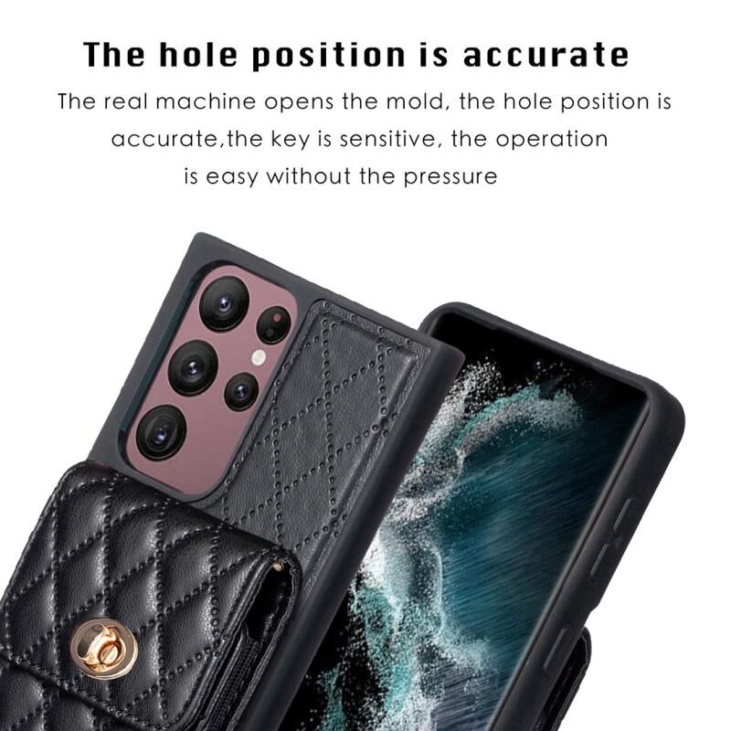 Για Samsung Galaxy S22 Ultra 5G Κάθετη πορτοφόλι ρομβοειδής δερμάτινη θήκη τηλεφώνου (Μαύρο)