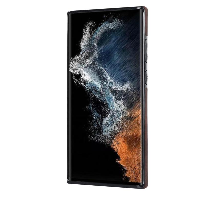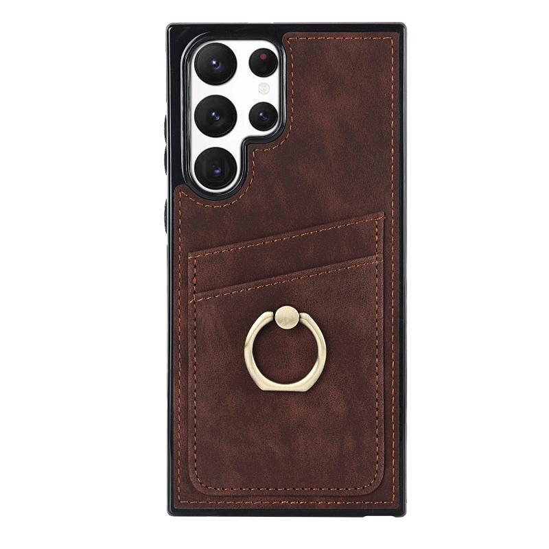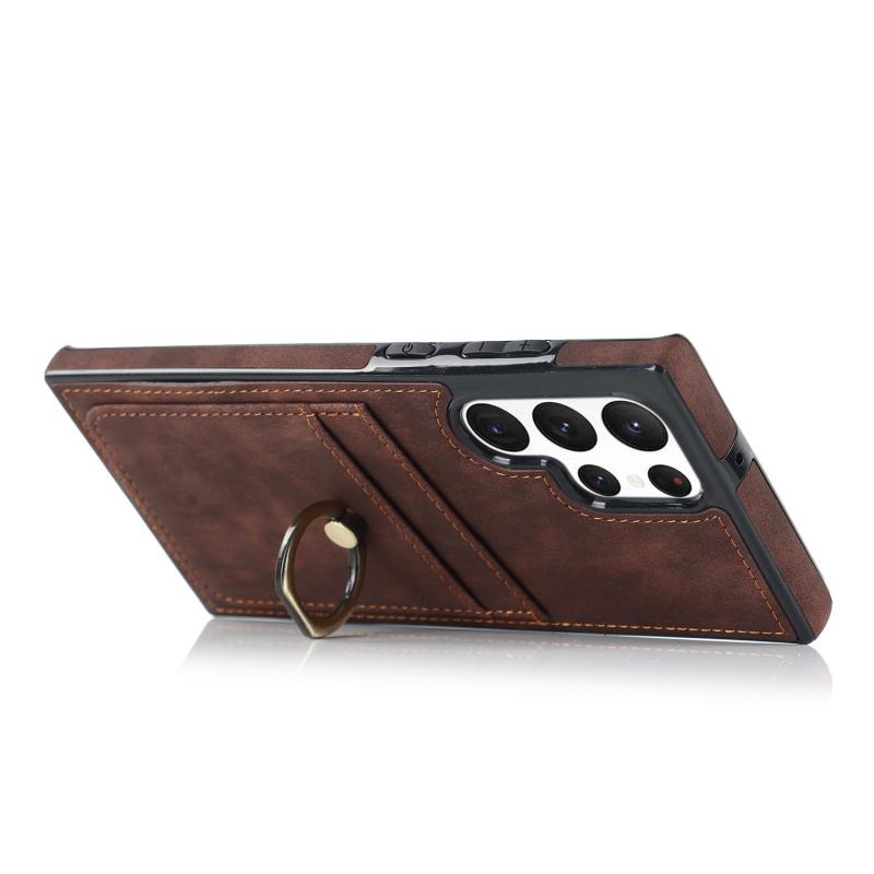 For Samsung Galaxy S22 Ultra 5G Vintage Patch Leather Phone Case with Ring Holder(Brown)
