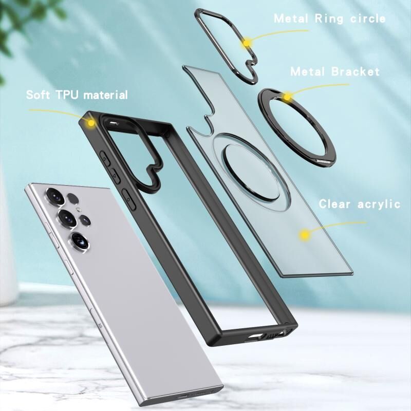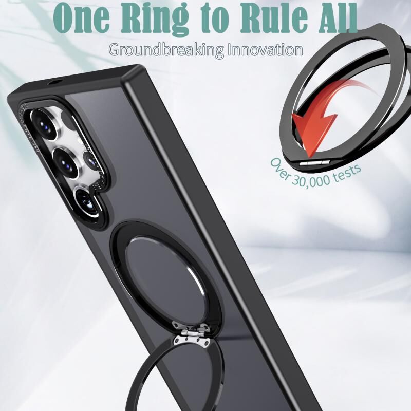 For Samsung Galaxy S22 Ultra 5G Wing Series MagSafe Magnetic Ring Holder Phone Case(Black)