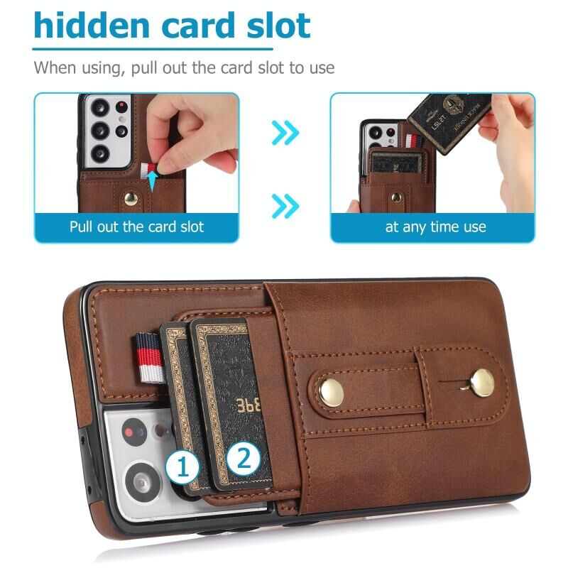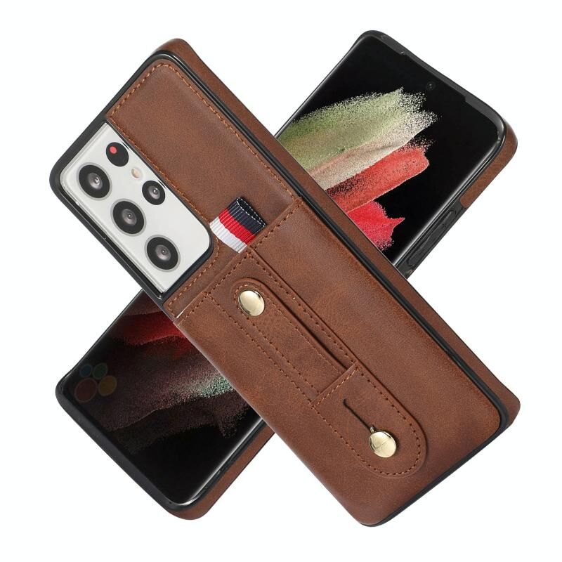 Για Samsung Galaxy S22 Ultra 5G Wristband Kickstand πορτοφόλι δερμάτινη θήκη τηλεφώνου (καφέ)