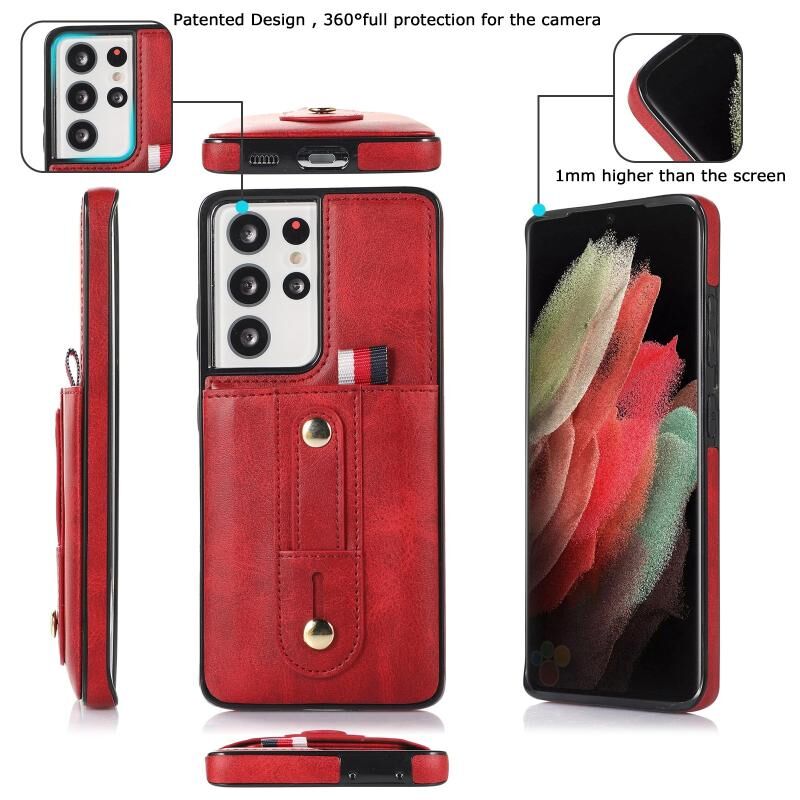 Για Samsung Galaxy S22 Ultra 5G Wristband Kickstand Πορτοφόλι Δερμάτινη θήκη τηλεφώνου (κόκκινο)