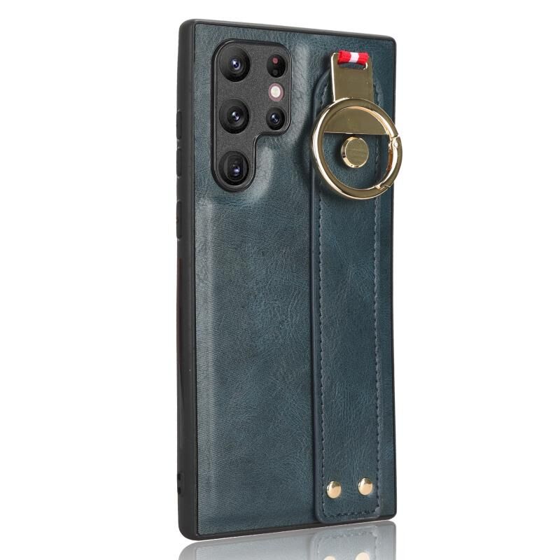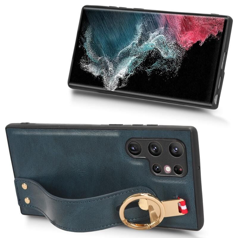 Για Samsung Galaxy S22 Ultra 5G Wristband δέρμα πίσω υπόθεση τηλεφώνου (μπλε)