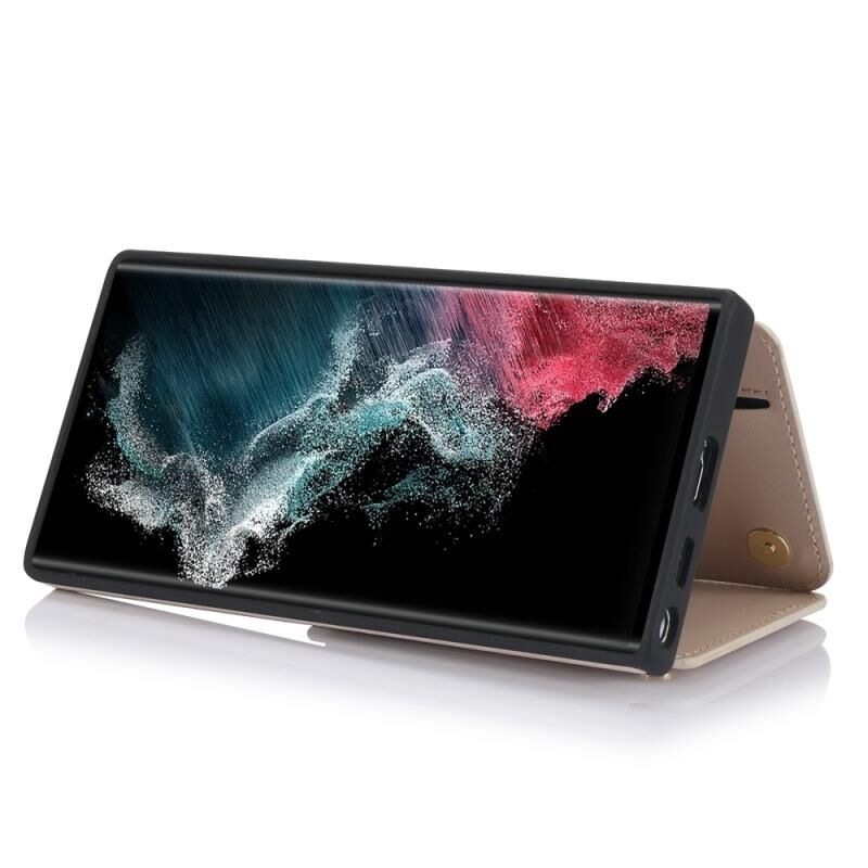Για Samsung Galaxy S22 Ultra 5G YM006 δέρμα αίσθηση φερμουάρ κάρτα τσάντα υπόθεση τηλεφώνου με διπλή κορδόνι (βερίκοκο)