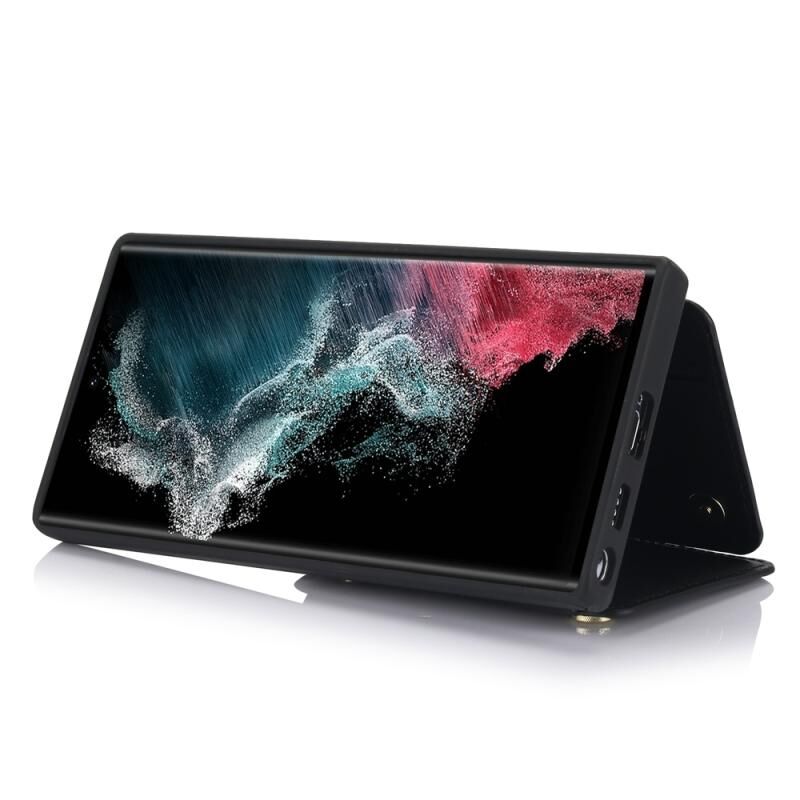 Για Samsung Galaxy S22 Ultra 5G YM006 δέρμα αίσθηση φερμουάρ κάρτα τσάντα υπόθεση τηλεφώνου με διπλή κορδόνι (μαύρο)