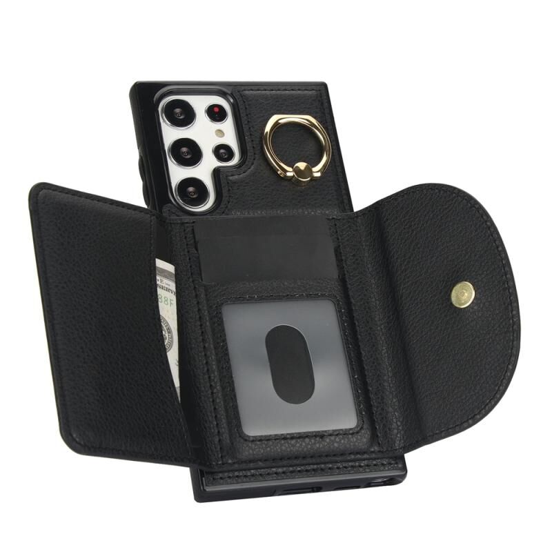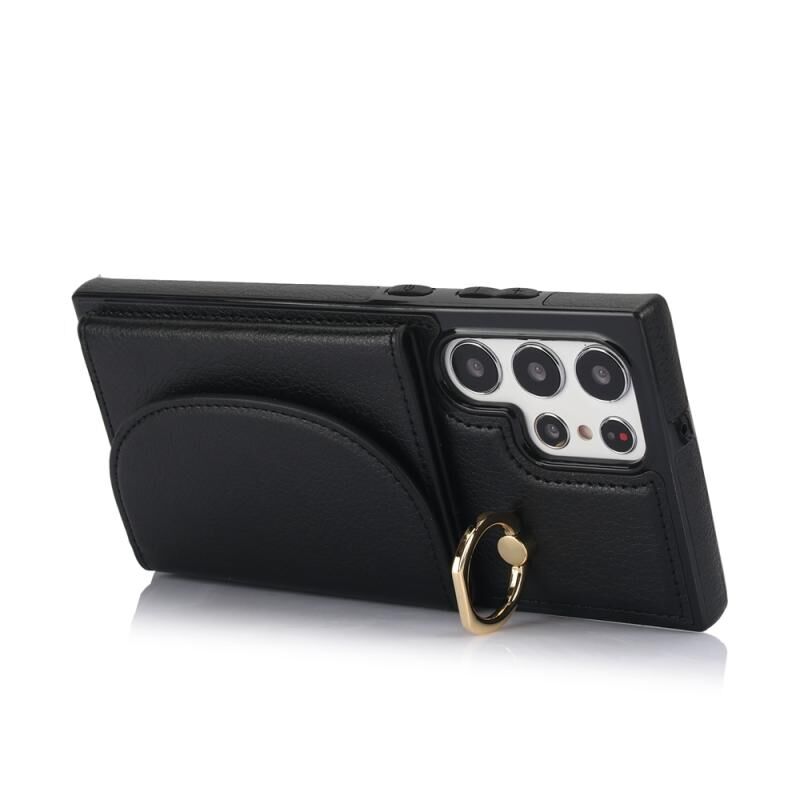 Για Samsung Galaxy S22 Ultra 5G YM007 Ring κάτοχος κάρτα τσάντα τσάντα δέρμα αίσθηση υπόθεση τηλεφώνου (μαύρο)