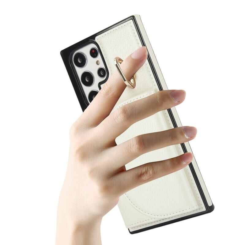 Για Samsung Galaxy S22 Ultra 5G YM007 Ring κάτοχος κάρτα τσάντα τσάντα δέρμα αίσθηση υπόθεση τηλεφώνου (λευκό)