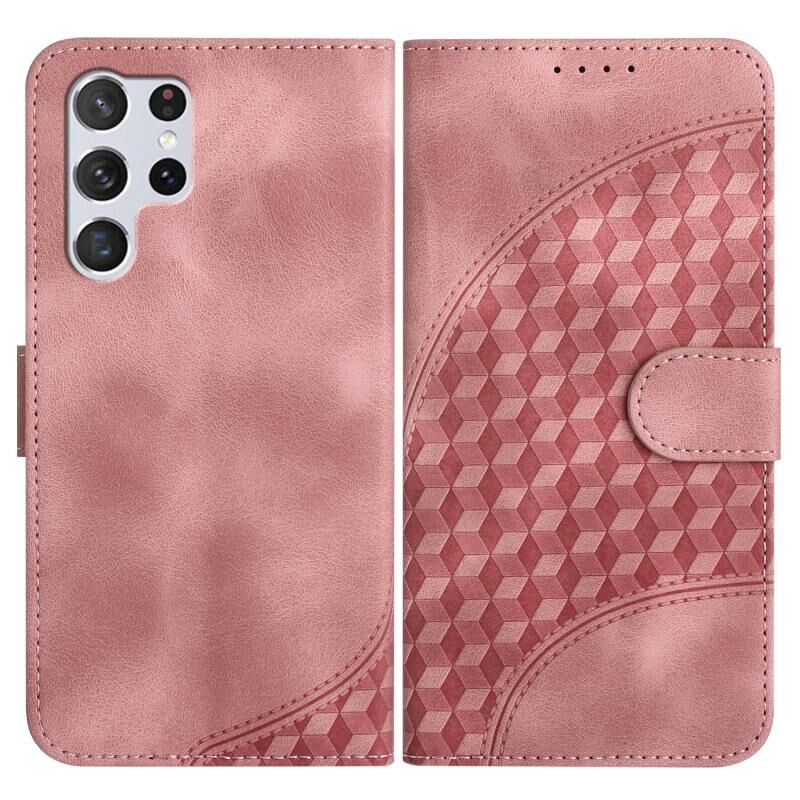 Για Samsung Galaxy S22 Ultra 5G YX0060 Elephant Head ανάγλυφο τηλέφωνο δερμάτινη θήκη με κορδόνι (ροζ)