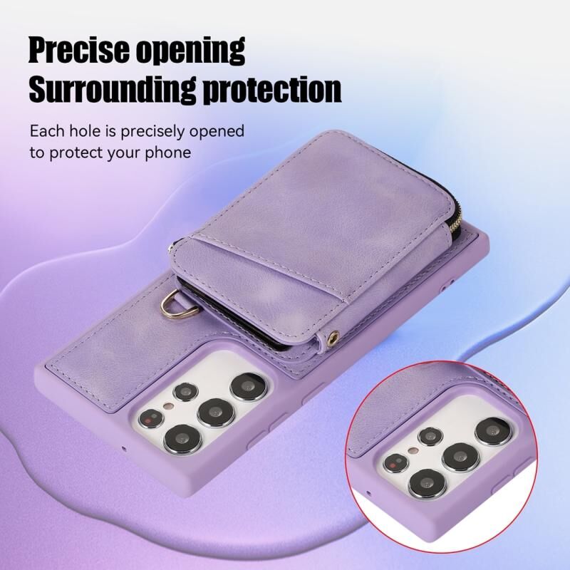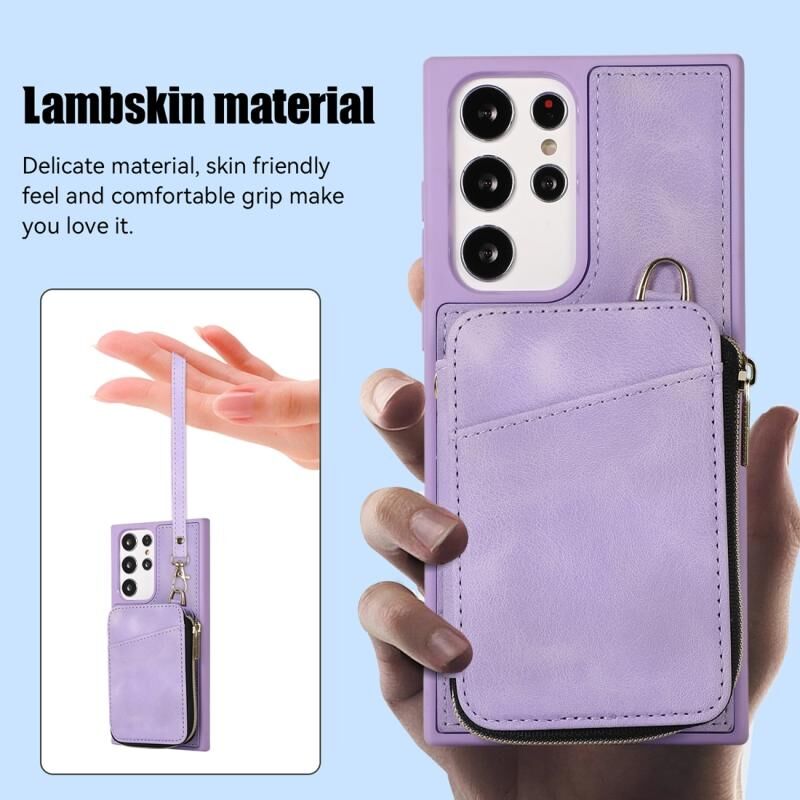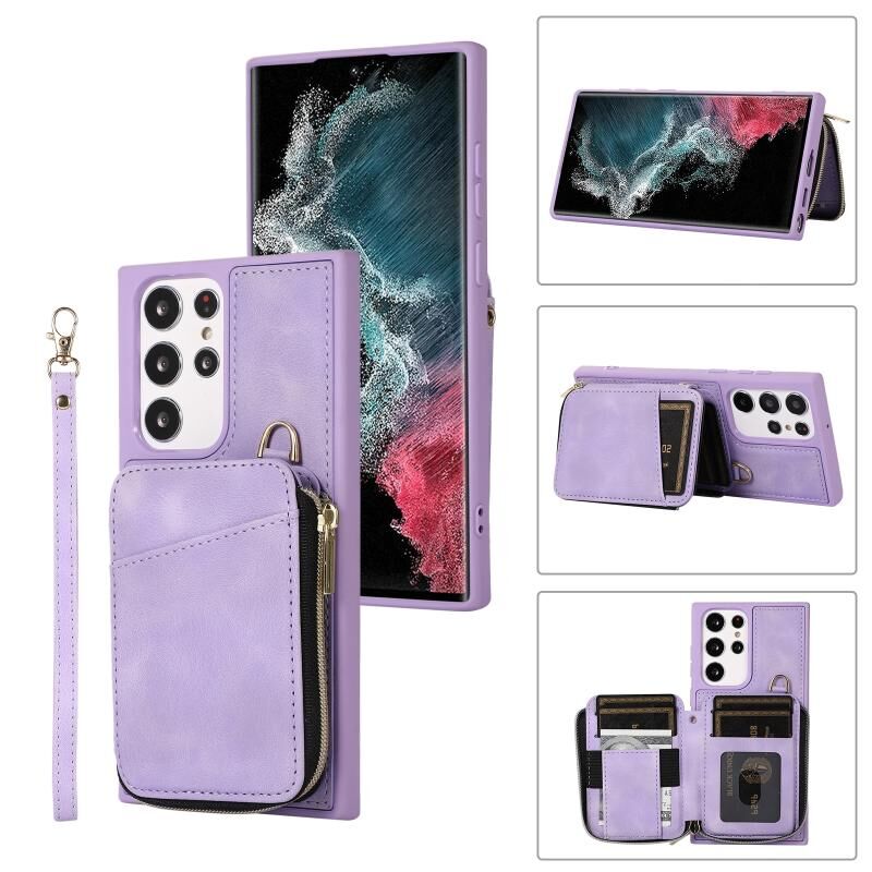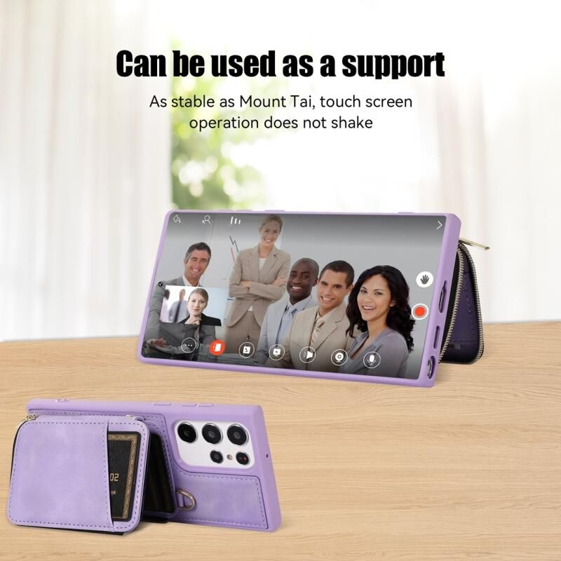Για Samsung Galaxy S22 Ultra 5G φερμουάρ κάρτα τσάντα πίσω κάλυμμα υπόθεση τηλεφώνου (μωβ)