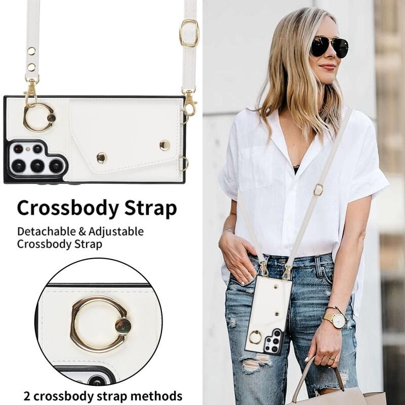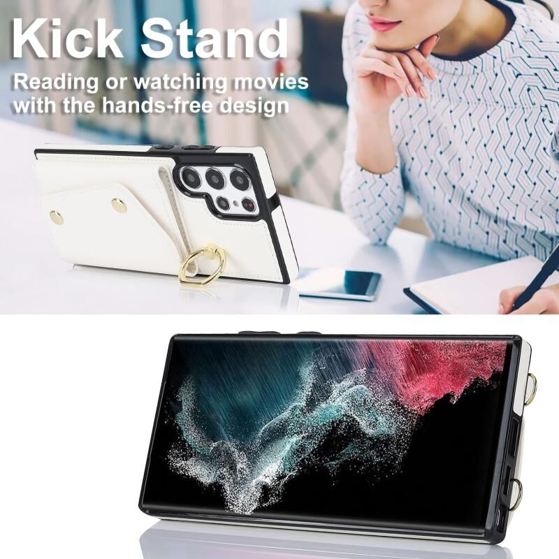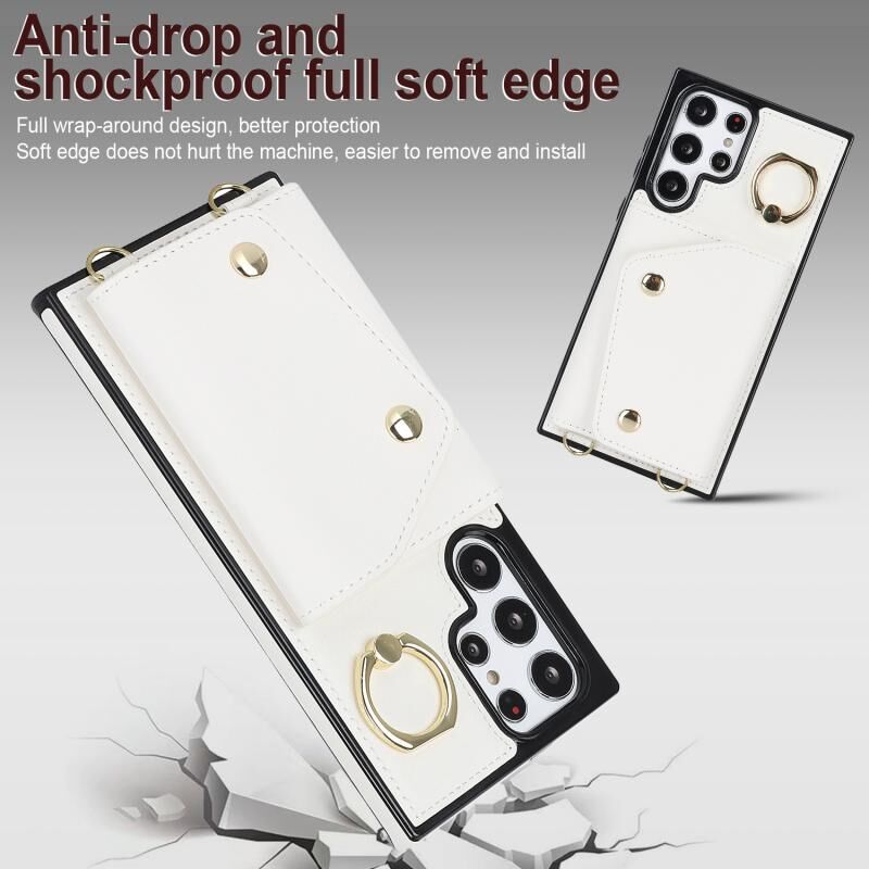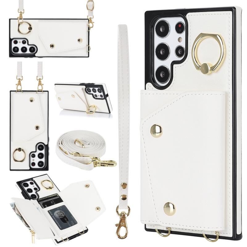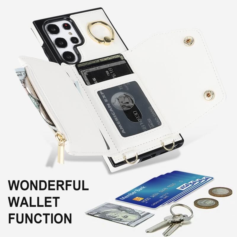 Για Samsung Galaxy S22 Ultra 5G φερμουάρ τσάντα κάρτα τηλέφωνο υπόθεση με διπλό κορδόνι (λευκό)