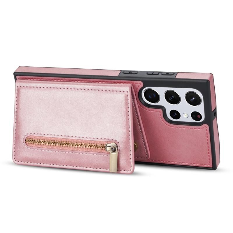 Θήκη κινητού τηλεφώνου με φερμουάρ και θήκη καρτών για Samsung Galaxy S22 Ultra 5G (Μαύρο)