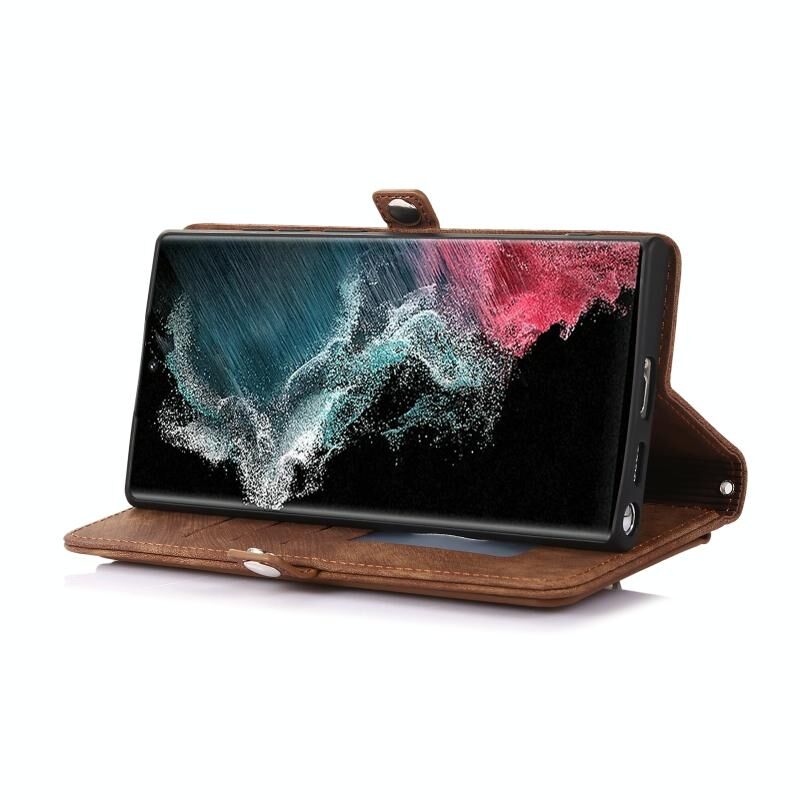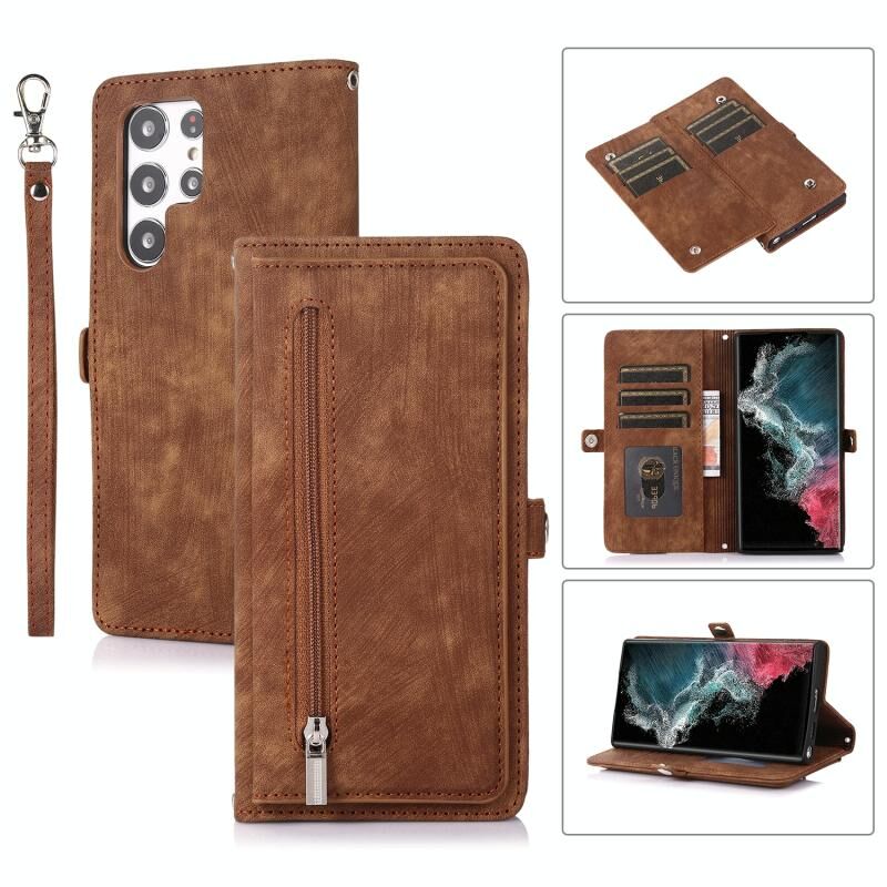 Για Samsung Galaxy S22 Ultra 5G φερμουάρ κάρτα Slot πόρπη πορτοφόλι δερμάτινη θήκη τηλεφώνου (καφέ)