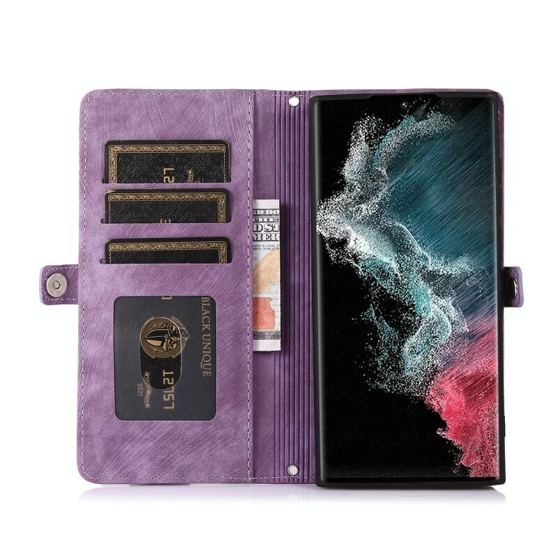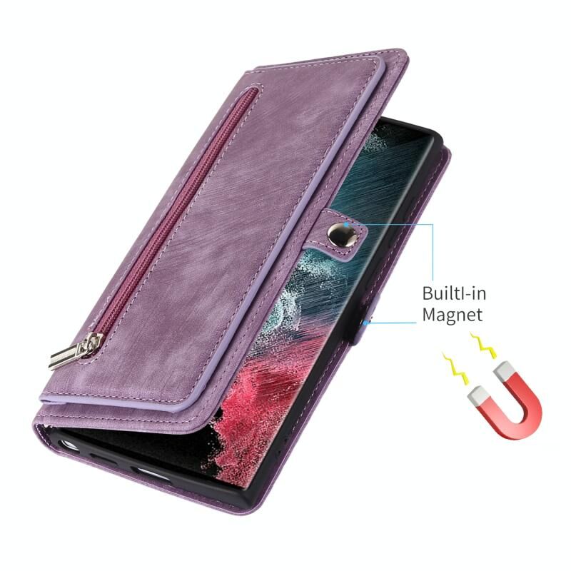 Για Samsung Galaxy S22 Ultra 5G φερμουάρ κάρτα Slot πόρπη πορτοφόλι δερμάτινη θήκη τηλεφώνου (μωβ)