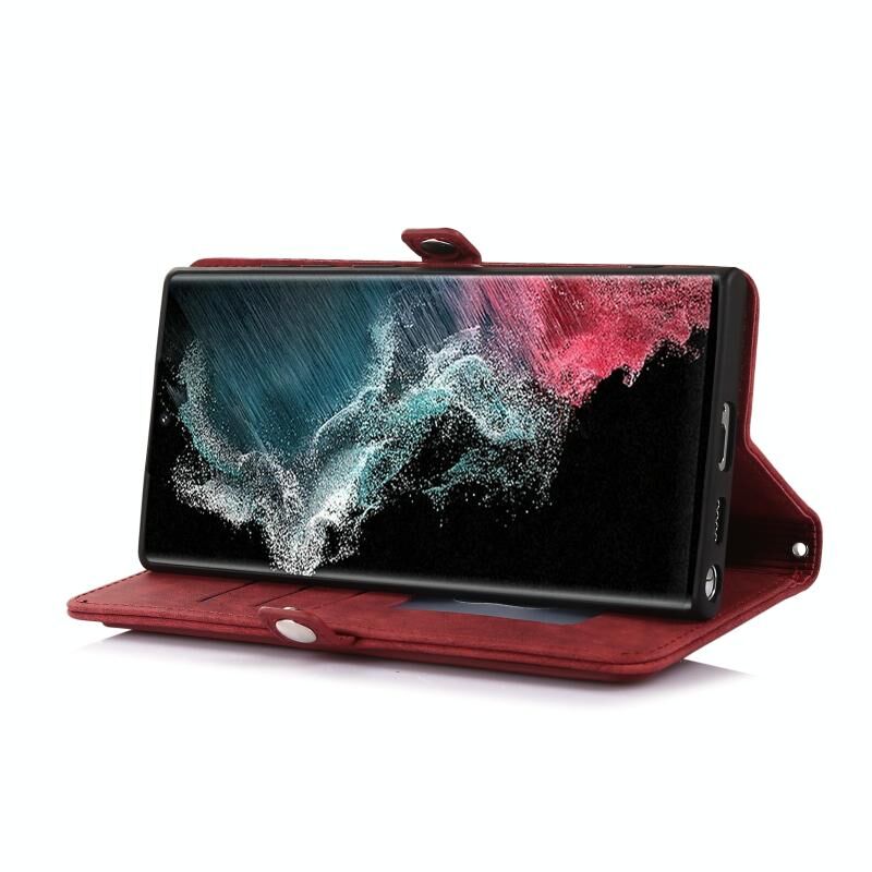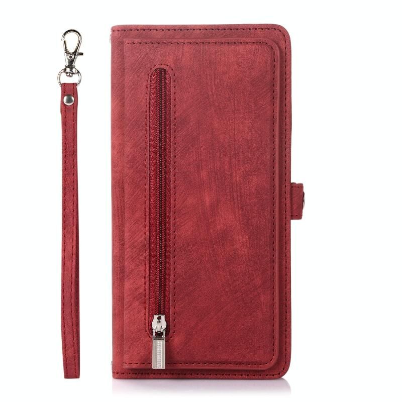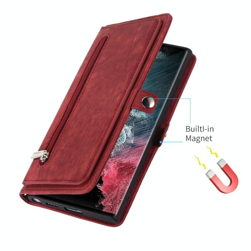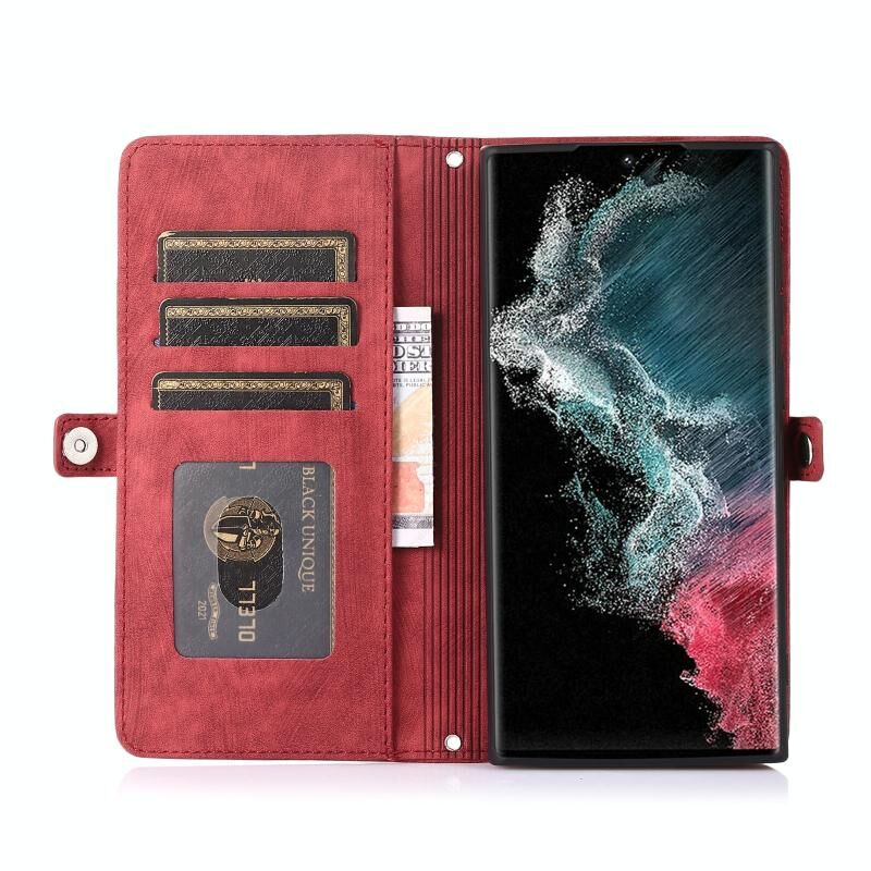 Για Samsung Galaxy S22 Ultra 5G φερμουάρ κάρτα Slot πόρπη πορτοφόλι δερμάτινη θήκη τηλεφώνου (κόκκινο)