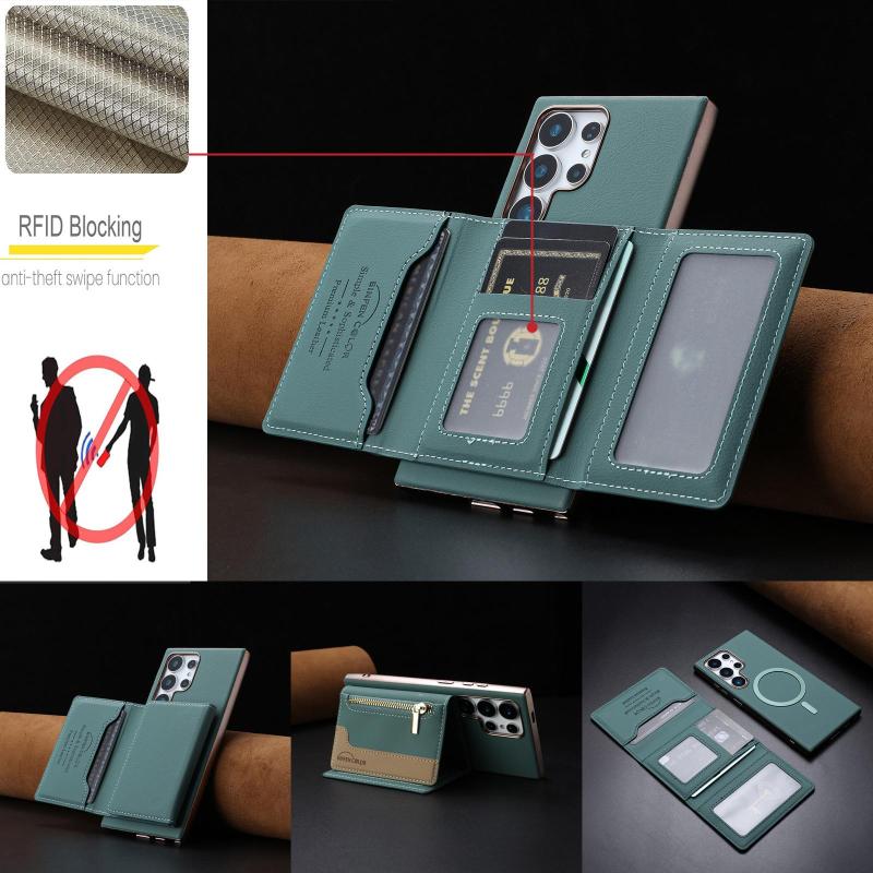 2. Magnetic Tri-Fold Wallet Design: Features a horizontal fold with a strong magnetic closure for easy access and secure storage.