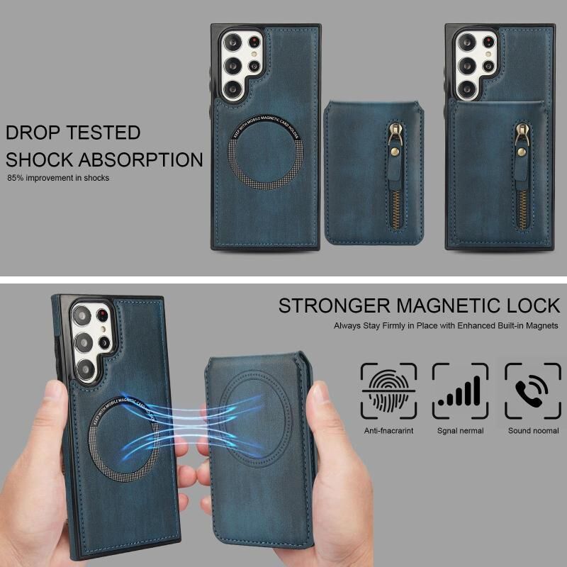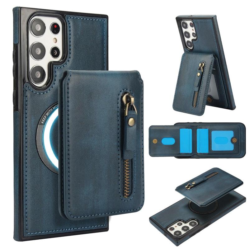 For Samsung Galaxy S22 Ultra 5G Zipper Wallet Split MagSafe Leather Back Phone Case(Blue)