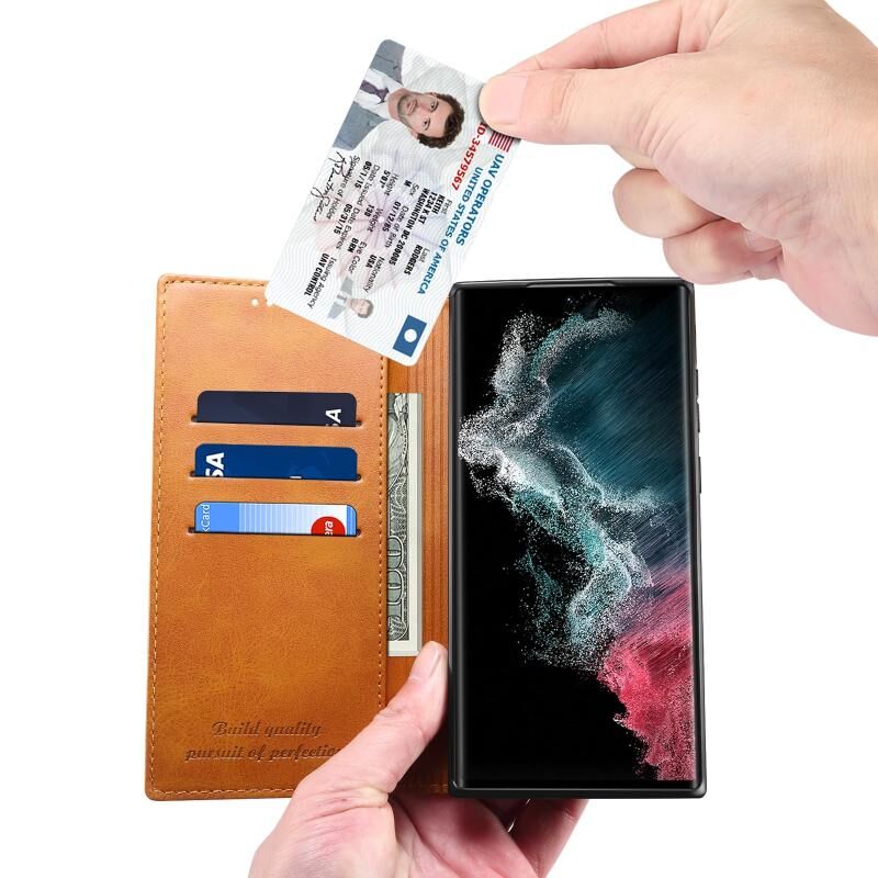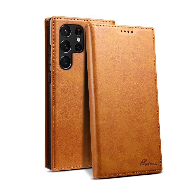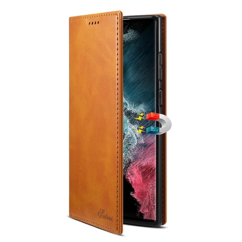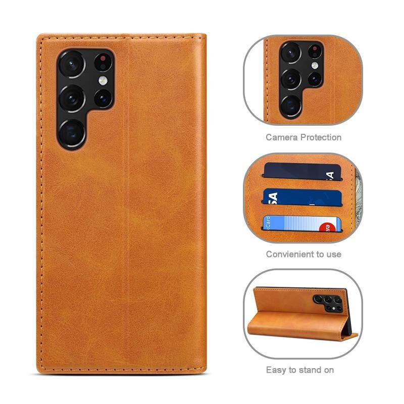 Για Samsung Galaxy S22 Ultra Calf Texture Οριζόντια Flip δέρμα τηλέφωνο υπόθεση (χακί)